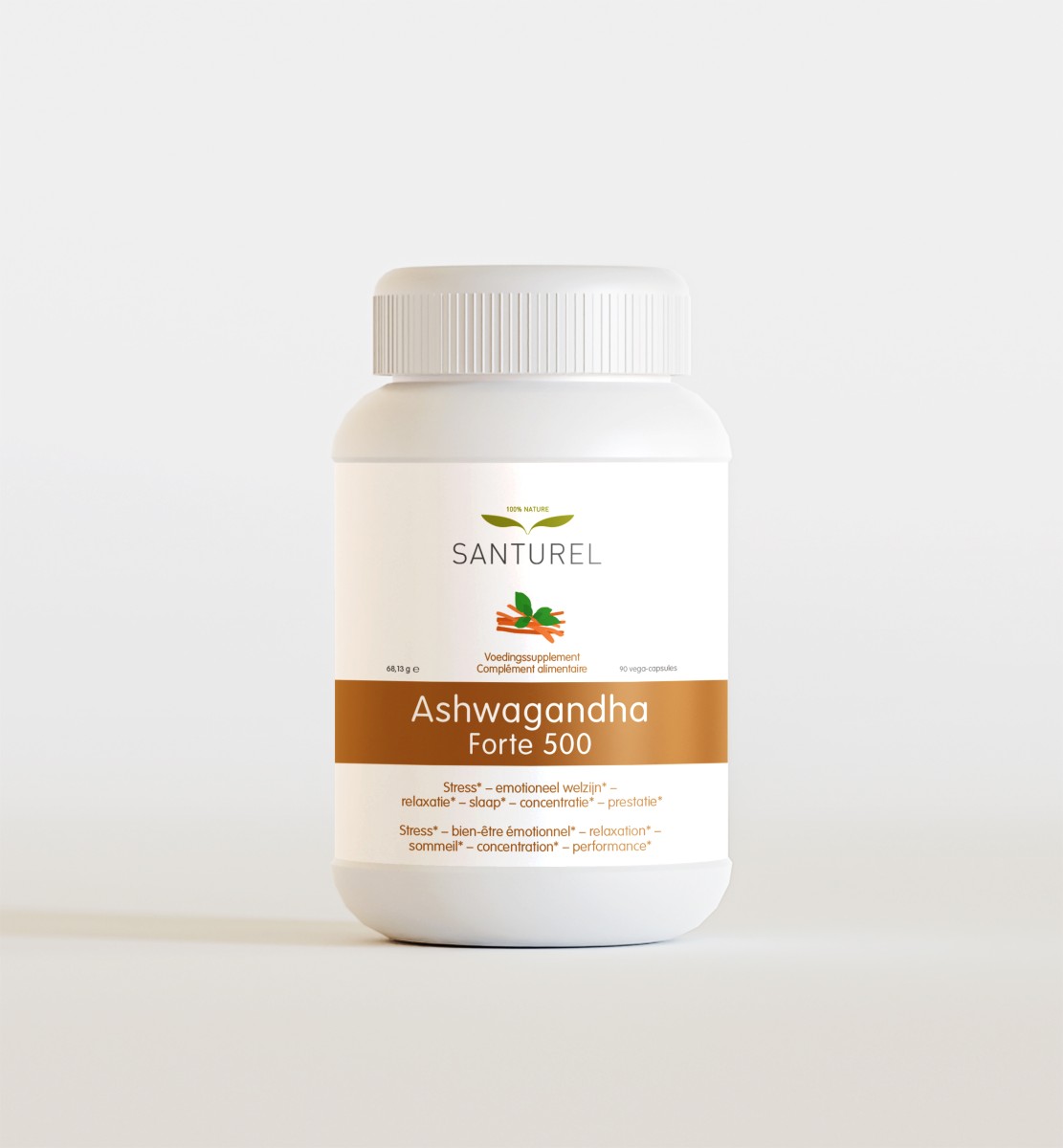 Ashwagandha Forte 500 – 25 mg de withanolides de Santurel est un complément alimentaire puissant qui aide à réduire le stress, favorise la relaxation et soutient un sommeil réparateur. Il contribue également à améliorer votre énergie et vos performances, et soutient le fonctionnement des organes reproducteurs masculins et féminins.